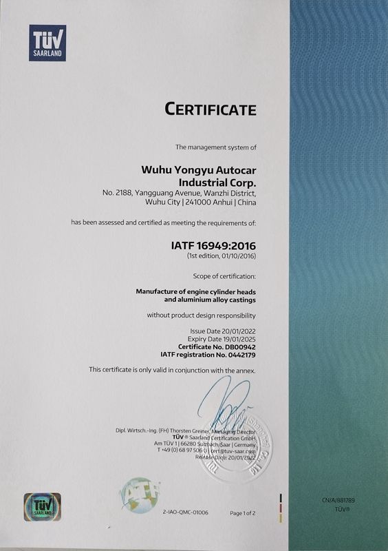 2021年12月底,公司主廠區(qū)及鑄造車間廠區(qū)順利通過IATF16949體系復(fù)審,獲得體系證書。
